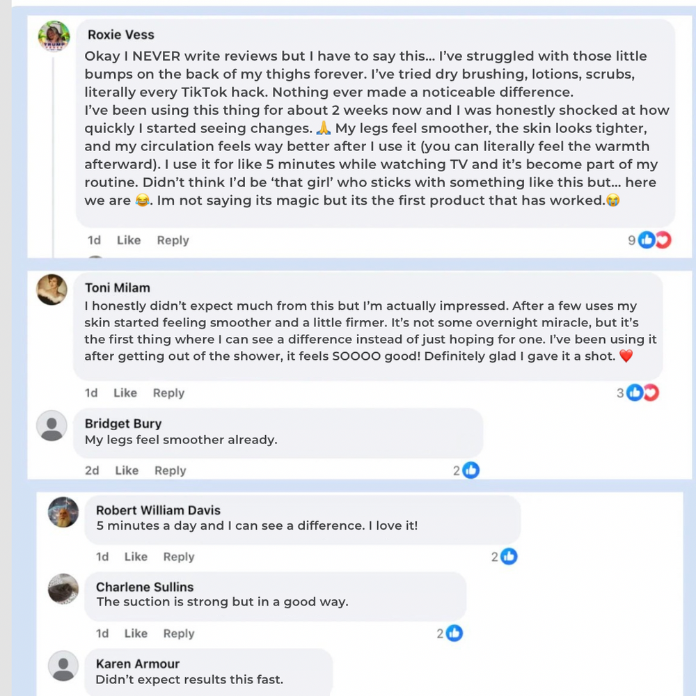 Over the past decade, plenty of research has shown that vacuum-style massage therapy, like used in SculptWave, can noticeably improve skin texture and the appearance of cellulite. SculptWave builds on that same science - using adjustable suction and smooth rolling motion to boost circulation and support healthier, firmer-looking skin. In user testing, people reported their skin feeling smoother, tighter, and more even with consistent use.